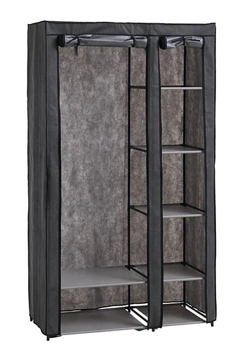 Acier et polypropylène. Intérieur de garde-robe : 4 étagères et 1 tringle à vêtements. l100 x H174 x P46 cm
