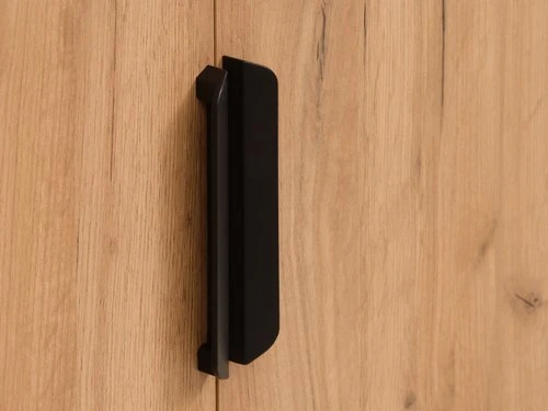 En panneau de particules. Surface : mélaminé. 3 tiroirs avec glissières d’extension complète. Intérieur de garde-robe : 4 étagères et 2 tringles à vêtements. l145 x H176 x P50 cm
