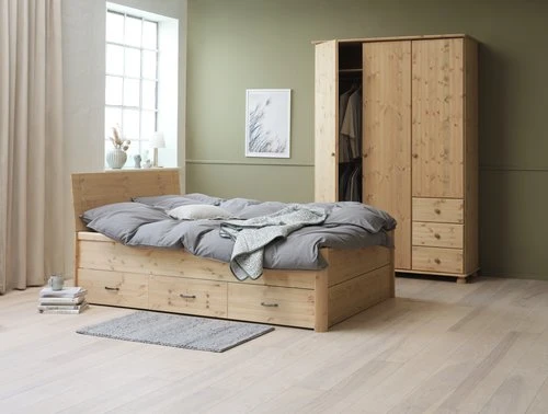 | Tiroir | Face avant: Pin massif, Sommier: HDF (panneau de fibres haute densité)Les panneaux HDF consistent de fibres de bois coupés très fins, collés sous pression., Côté: Pin massif, Dossier: Pin massif |