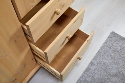 | Tiroir | Face avant: Pin massif, Sommier: HDF (panneau de fibres haute densité)Les panneaux HDF consistent de fibres de bois coupés très fins, collés sous pression., Côté: Pin massif, Dossier: Pin massif |