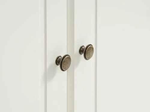 Pin massif et MDF (panneau de fibres moyenne densité). Intérieur de garde-robe : 3 étagères. l82 x H153 x P39 cm