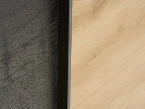 En panneaux de particules mélaminé. 2 portes coulissantes soft-close. Intérieur : 2 tringles à vêtements, 4 étagères. l204 x H222 x P68 cm