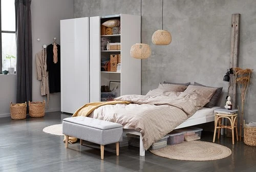 Structure : contreplaqué. Garnissage : mousse polyuréthane. Revêtement : polyester. Pieds : bois de caoutchouc massif. Avec espace de rangement. l95 x H45 x P37 cm