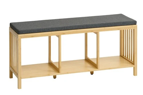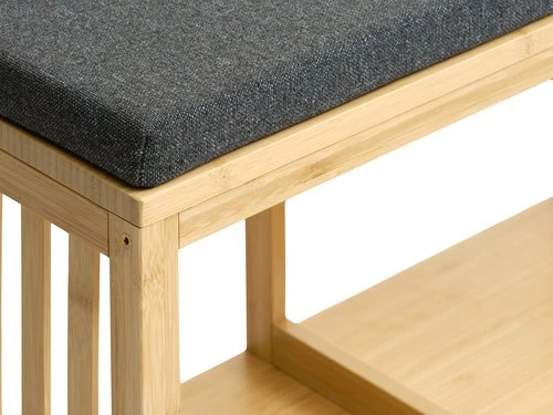 En bambou. Garnissage : mousse polyuréthane (25 kg/m³). Revêtement : polyester. Vernis mat. l107 x H45 x P32 cm