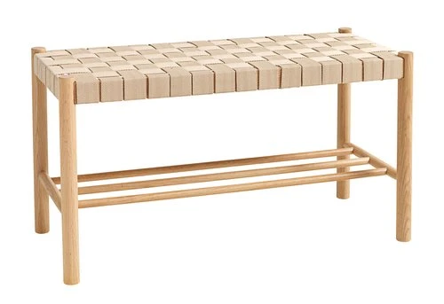 En chêne massif, acier et polyester. Vernis. l81 x H45 x P35 cm