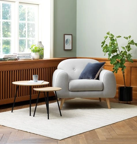 En MDF mélaminé. Cadre et piètement : acier. Ø40 x H40 cm