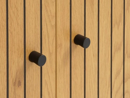 En MDF4 mélaminé. Pieds : acier. 2 portes, 2 étagères. l100 x H80 x P41 cm