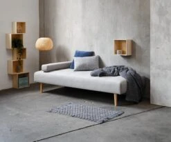 Structure : HDF, panneau de particules, pin massif, acier. Rembourrage : mousse polyuréthane (21;30 kg/m³) et ressorts Bonell. Revêtement : 100% polyester. Pieds : polypropylène, pin massif. Réversible. Rangement sous la méridienne. Couchage : 145×195 cm. l243 x H89 x P86/156 cm
