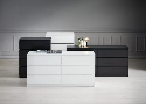 | Tiroir | Face avant: MélamineLa mélamine est un type de placage déco avec une surface durable et résistante aux rayures. Il est fait de feuilles de plastique très minces qui sont collées sur un panneau de particules ou de MDF., Panneau de particules |