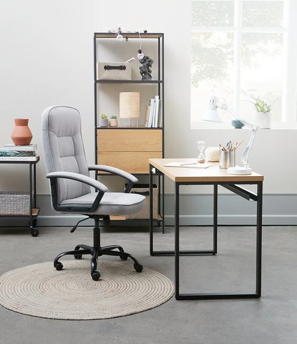 Plateau : MDF mélaminé. Piètement : acier, polypropylène. l56 x H69 x P40 cm
