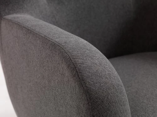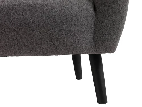 Structure : polyuréthane, contreplaqué, polyester. Rembourrage : mousse polyester. Revêtement : polyester. Piètement : bois de caoutchouc massif. Finition vernie. l89 x H96 x P87 cm