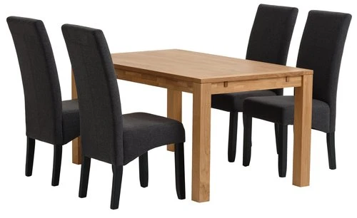 HAGE L150 Table Chêne + 4 BAKKELY Chaises Gris/noir