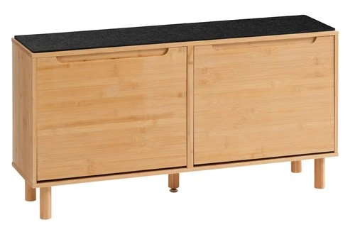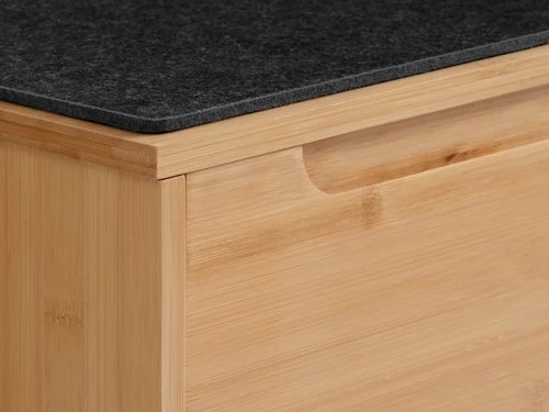 En bambou et panneau de particules MDF. Partie supérieure en feutre. Vernis mat. 2 compartiments. l98 x H52 x P25 cm