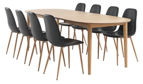 Plateau : MDF, placage chêne. Cadre, pieds : bois de caoutchouc massif, métal. Vernis mat teinté. Incl. 2 rallonges. l90 x L190/270 x H75 cm