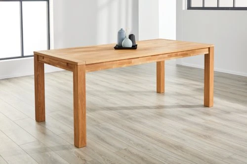 En panneau de particules plaqué chêne, chêne massif. Finition huilée. Excl. rallonges. l90 x L190 x H76 cm