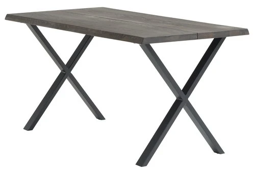 Partie supérieure : chêne massif. Pieds : acier. l80 x L140 x H75 cm