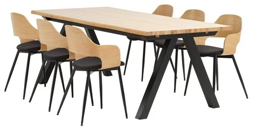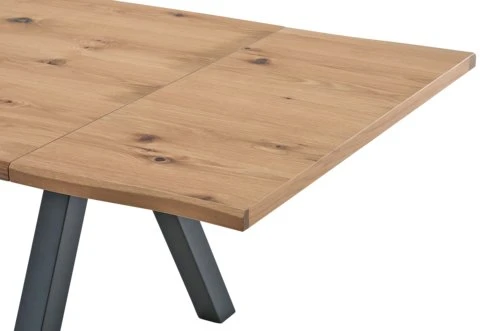 Plateau : panneau de particules plaqué chêne. Cadre : chêne/bouleau/pin massif. Piètement : MDF, bouleau/pin massif. Vernis. Excl. rallonges. l100 x L210 x H75 cm
