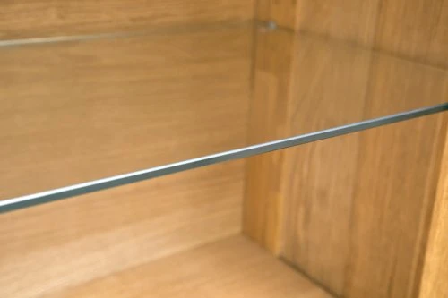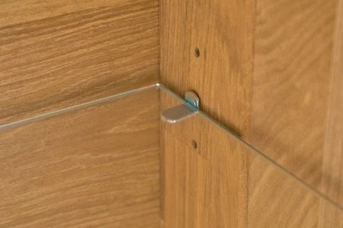 Chêne massif, placage chêne et verre trempé. l118 x H139 x P42 cm
