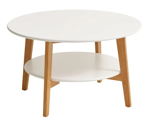 En MDF. Piètement : bois de caoutchouc massif. Vernis, huilé. 1 étagère. Ø80 x H45 cm