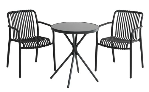 Cadre et pieds : acier. Plateau : verre trempé. Ø60 x H70 cm