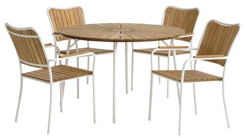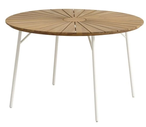 Cadre et pieds : acier. Plateau : bois d’acacia massif FSC® huilé. Ø120 x H74 cm