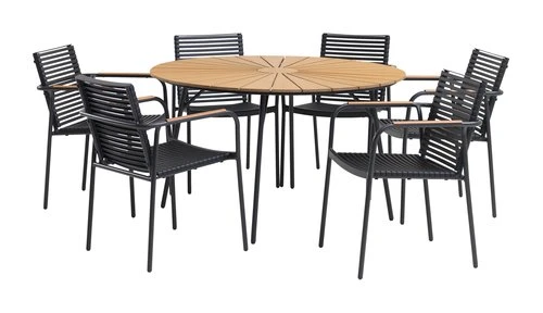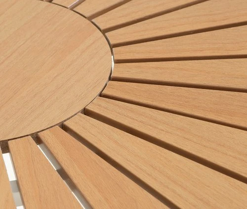 | Matériaux | Cadre: AluminiumL'aluminium est un matériel léger et élégant qui ne rouille pas. Il n'est pas nécessaire de le maintenir et le matériel est facile à nettoyer avec un chiffon humide., Dessus de table: Imitation bois (polystyrène)Cette imitation bois est faite à partir d’un matériau synthétique sans entretien dont la structure créé un effet de bois naturel. Elle est fabriquée à partir de plastique, tel que le polystyrène, qui constitue un matériau durable et résistant aux intempéries. Cette imitation bois est protégée contre les UV, ce qui garantit une surface dont la couleur ne change pas., Pieds: AluminiumL'aluminium est un matériel léger et élégant qui ne rouille pas. Il n'est pas nécessaire de le maintenir et le matériel est facile à nettoyer avec un chiffon humide. |