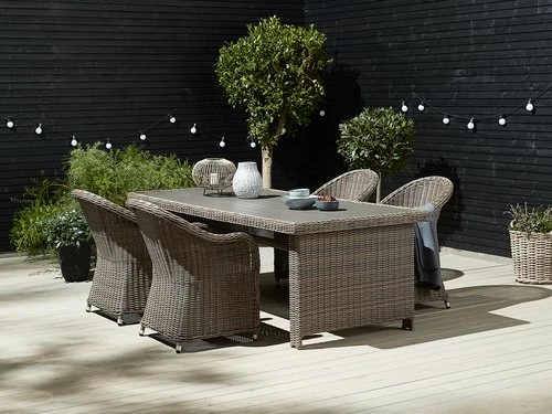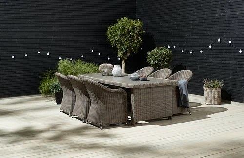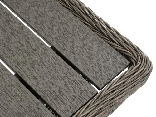 | Matériaux | Cadre: AluminiumL'aluminium est un matériel léger et élégant qui ne rouille pas. Il n'est pas nécessaire de le maintenir et le matériel est facile à nettoyer avec un chiffon humide., Polyrotin (polyéthylène)Le polyrotin est un type d’osier synthétique et léger. Il est résistant, protégé contre les UV et résistant aux intempéries., Dessus de table: Imitation bois (polystyrène)Cette imitation bois est faite à partir d’un matériau synthétique sans entretien dont la structure créé un effet de bois naturel. Elle est fabriquée à partir de plastique, tel que le polystyrène, qui constitue un matériau durable et résistant aux intempéries. Cette imitation bois est protégée contre les UV, ce qui garantit une surface dont la couleur ne change pas., Pieds: AluminiumL'aluminium est un matériel léger et élégant qui ne rouille pas. Il n'est pas nécessaire de le maintenir et le matériel est facile à nettoyer avec un chiffon humide., Polyrotin (polyéthylène)Le polyrotin est un type d’osier synthétique et léger. Il est résistant, protégé contre les UV et résistant aux intempéries. |