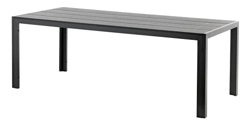 Cadre : aluminium. Plateau : imitation bois (polystyrène). l90 x L205 x H74 cm